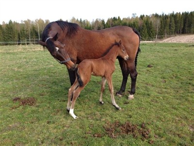 Det var roligt att få ett föl till efter Boss, han verkade här i Sverige i två säsonger och vi fick även föl efter honom ifjol (Nebraska u Montana). Nu är han tillbaka i Holland för fortsatt avelsverksamhet. Han fick en mycket fin fölrapport på sin första årgång där och vi hoppas såklart att han blir framgångsrik.
